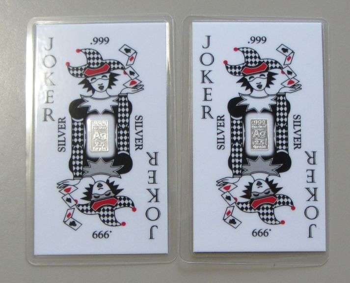 LOT 172 - 2 JOKER PLAYING CARDS 2.5 GRAIN EACH .999 FINE SILVER