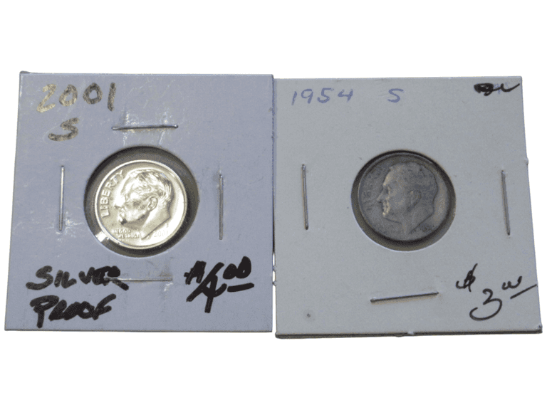 The 1954-S Roosevelt Dime, produced at the San Francisco Mint, boasts a mintage of 22,860,000 pieces, positioning it as a common issue within its series. This coin represents the era's standard silver composition before the copper-nickel clad transition in 1965, designed by John R. Sinnock, with subtle yet enduring appeal. Meanwhile, the 2001-S Roosevelt Dime is a modern proof issue, struck in 90% silver specifically for collectors, reflecting the San Francisco Mint's reputation for producing superbly mirrored surfaces and sharp details. Both coins, housed in protective holders, present collectors with an opportunity to appreciate the eclipse of everyday silver dimes and the continuation of numismatic artistry in proof issues. These examples cater to those keen on completing a comprehensive Roosevelt Dime collection or enhancing a U.S. Mint issue-type set.