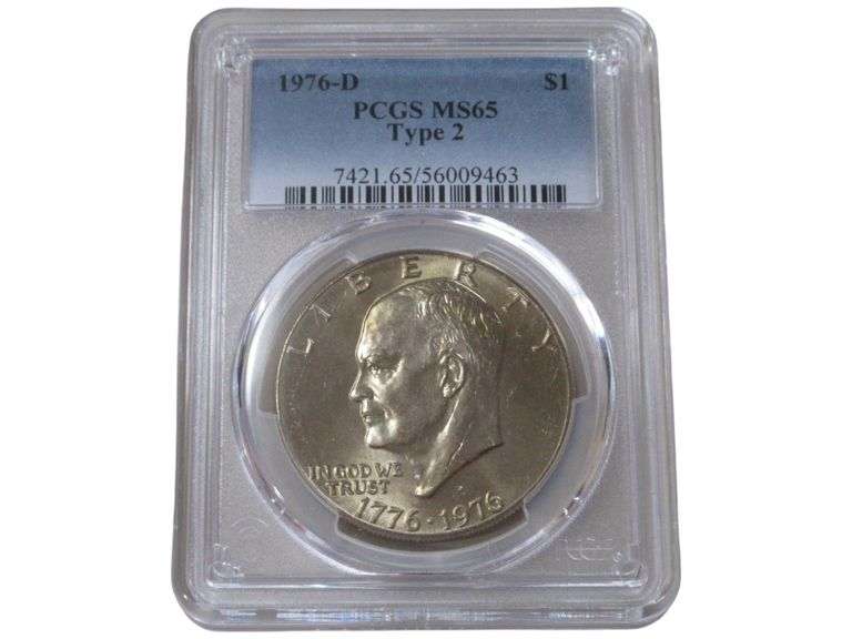 The 1976-D Eisenhower Dollar, featuring the Bicentennial design, boasts a mintage of 4,000,000 coins, making it a common date within the series. However, this Type 2 variant is distinguished by its unique reverse design, which showcases the Liberty Bell superimposed on the moon, a symbol of American independence. Graded MS65 by PCGS, this example exhibits exceptional luster and surface preservation, with minimal contact marks that enhance its eye appeal. As a product of the Denver Mint, it benefits from the facility's reputation for producing coins with strong strikes and attractive finishes, making it a desirable addition for both type collectors and those focusing on Bicentennial issues. This coin not only represents a significant historical moment but also holds value in the context of registry sets and type collections, appealing to a broad spectrum of numismatists.