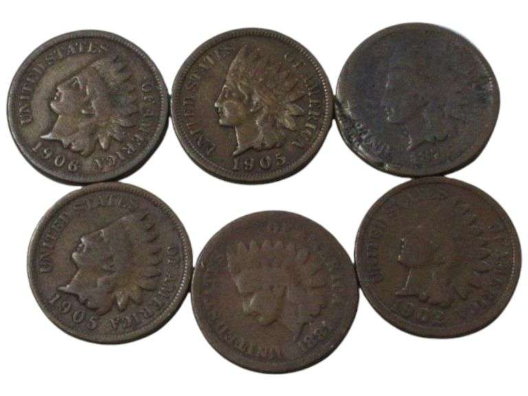 LOT 95 - Lot Of Six Indian Head Pennies Various Dates