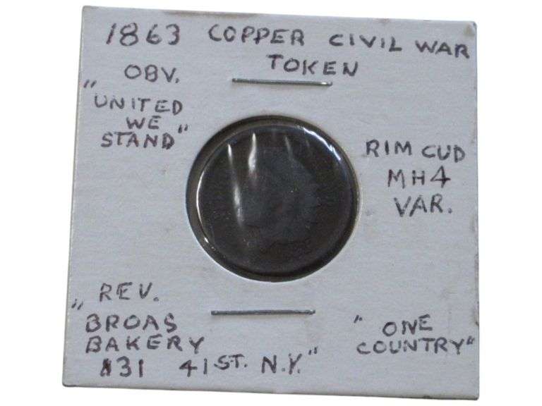 LOT 67 - 1863 Copper Civil War Token Broad's Bakery One Country